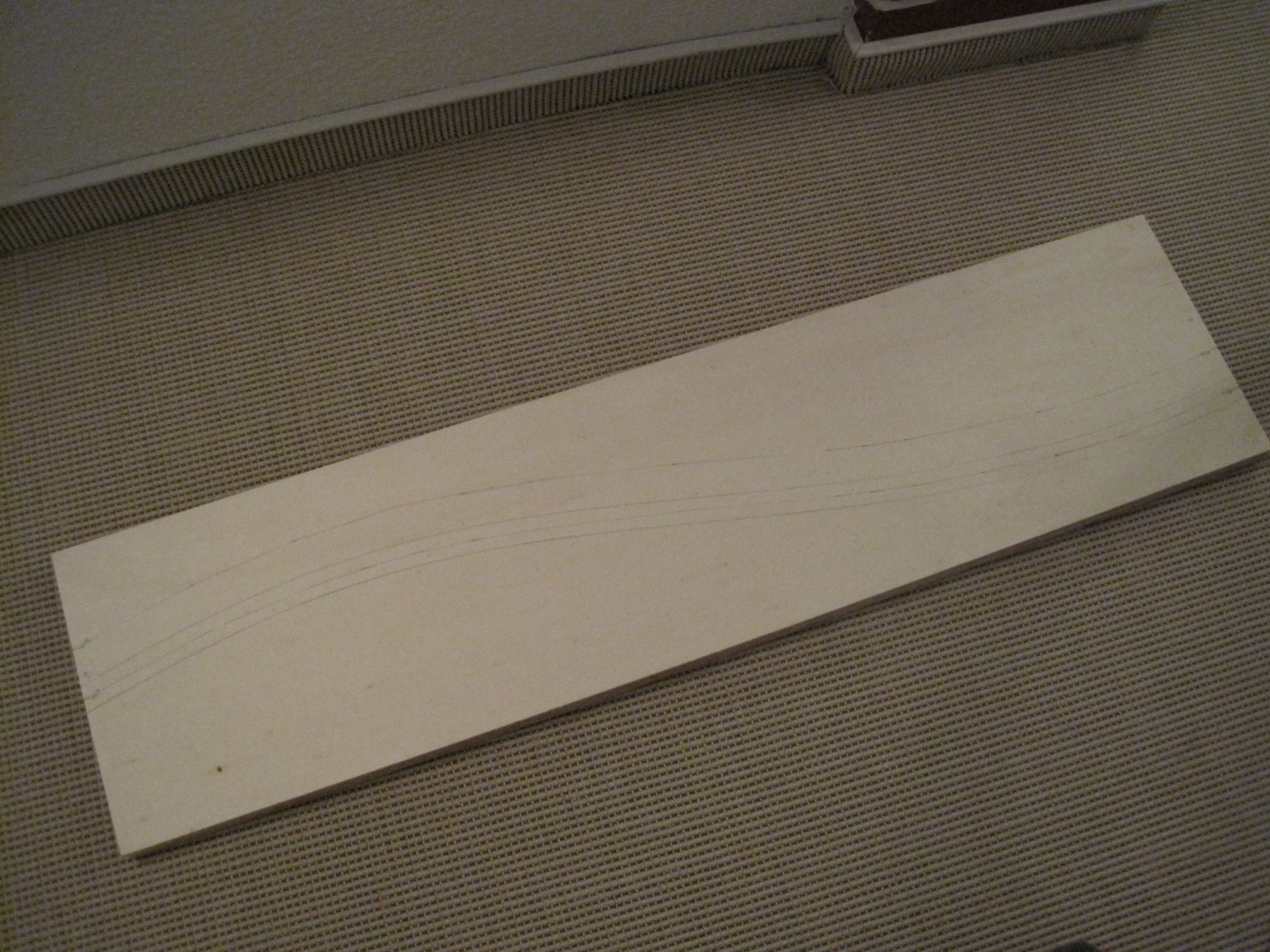 I managed to retain most of my earlier diorama and the shaped Peco tracks were used to mark the position of the tracks for this rework. I remarked them on this new baseboard, which I will cut according to its curves (cookie cutter method). This baseboard will be elevated about 10cm from the base.