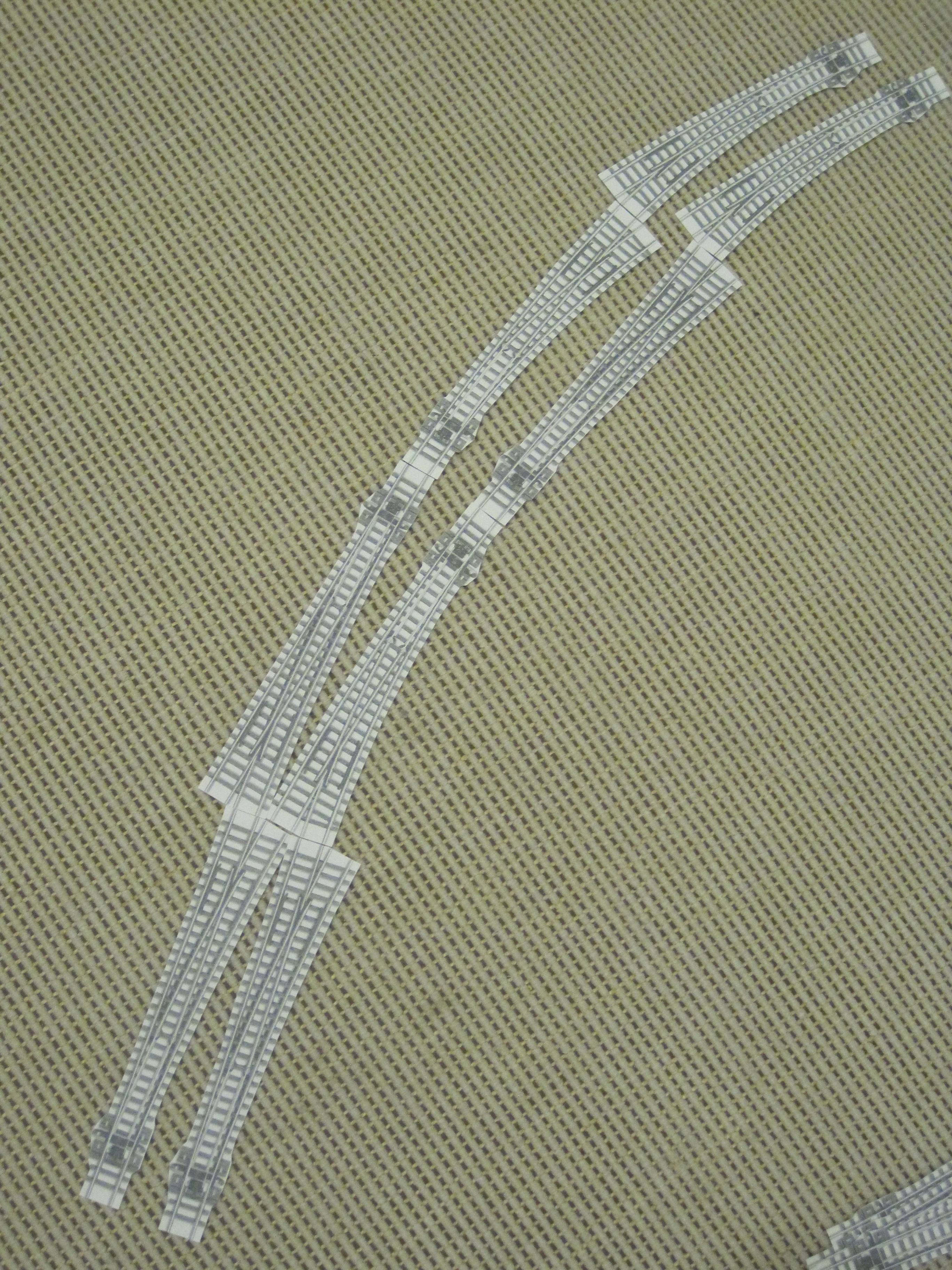 I tested with one part of the turnout configurations that would be challenging to build. Although it may look simple, these part of the turnouts consists of large and curved turnouts. The challenging part is that it is located 107cm from the floor and there will be tracks leading to 2 different levels – 109cm and 105cm. As Dirk highlighted to me, the challenge is how to handle the transition from 105cm to 109cm involving 4 tracks coupled with the need to have superelevation. This challenge will be addressed through rapid prototyping. I started by laying these one the floor but will transfer either to a cardboard or a piece of plywood that I would use. By doing rapid prototyping, I can gauge the angle of slant and how to adjust the positions of each turnout and leading and trailing tracks to 2 different levels. Confusing eh?