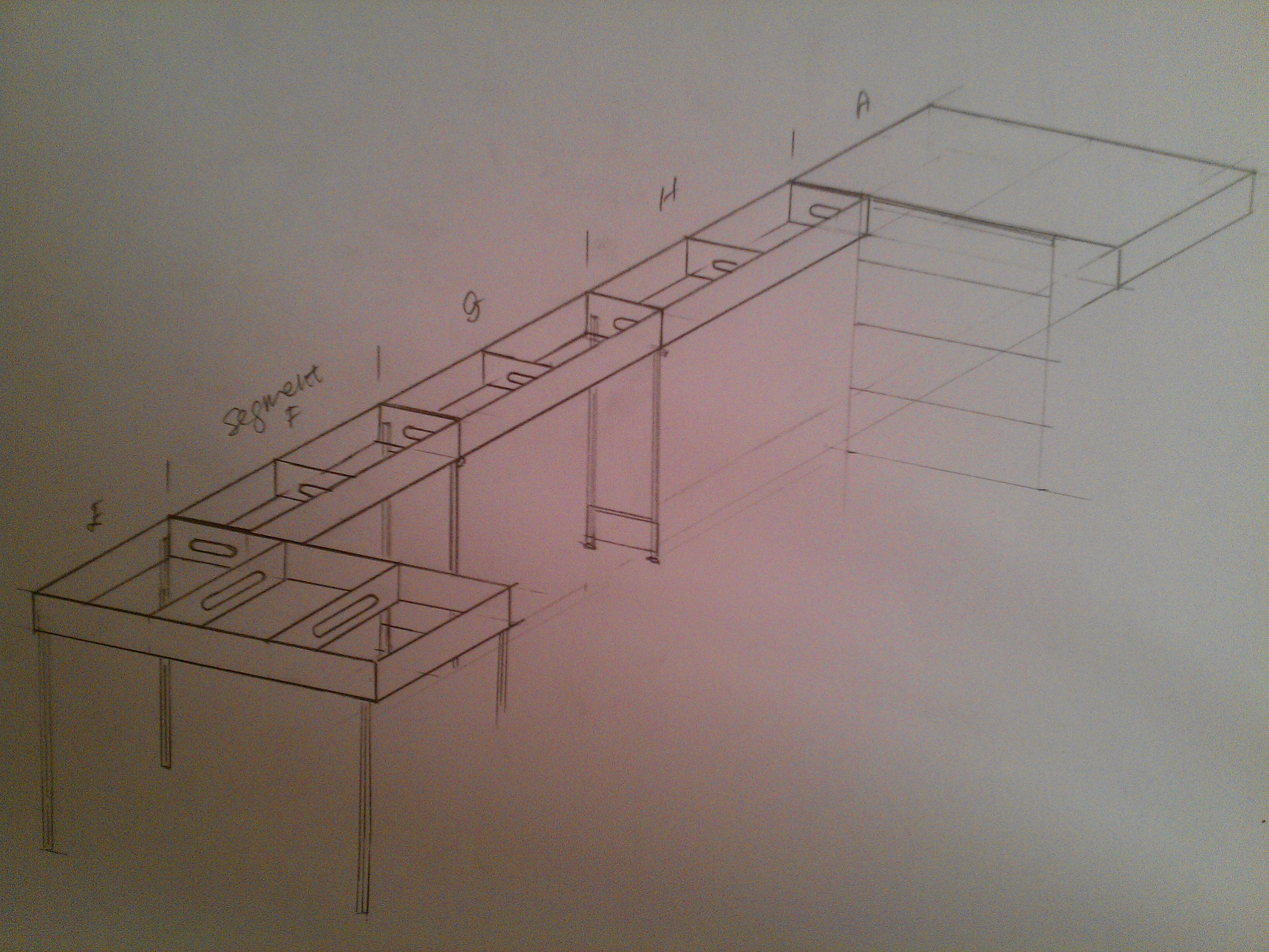 The end results after 3 hours under 5C were module parts for Segment F, G, H and base for Segment A. A sketch of the first half of my layout will help you get oriented with the terms I am using.