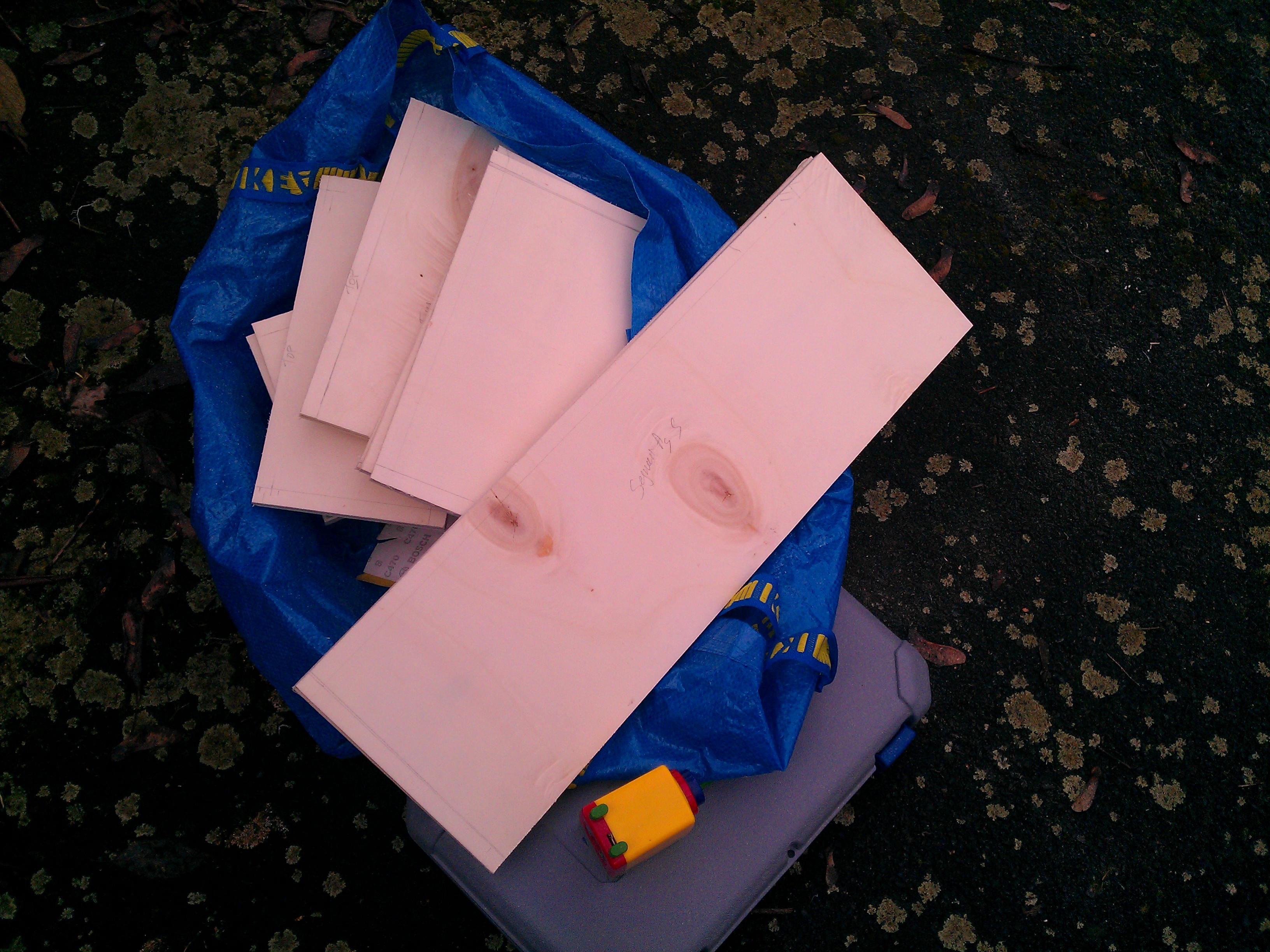 Not bad for a first hour. I managed to cut these parts for Segment E and the back panel for Segment A. And, an IKEA bag full of end profiles for all segments, which took another 2 hours to measure and cut.