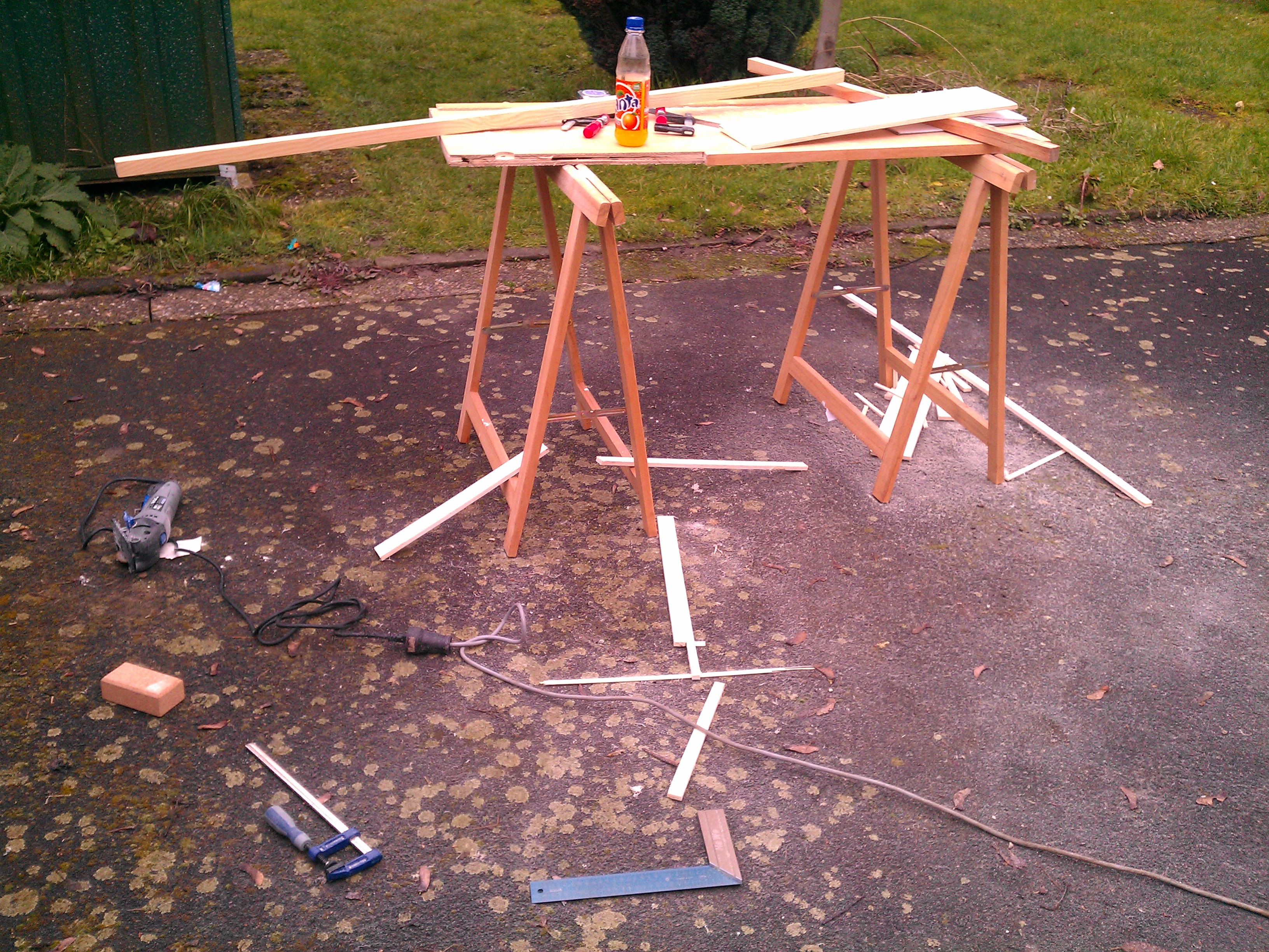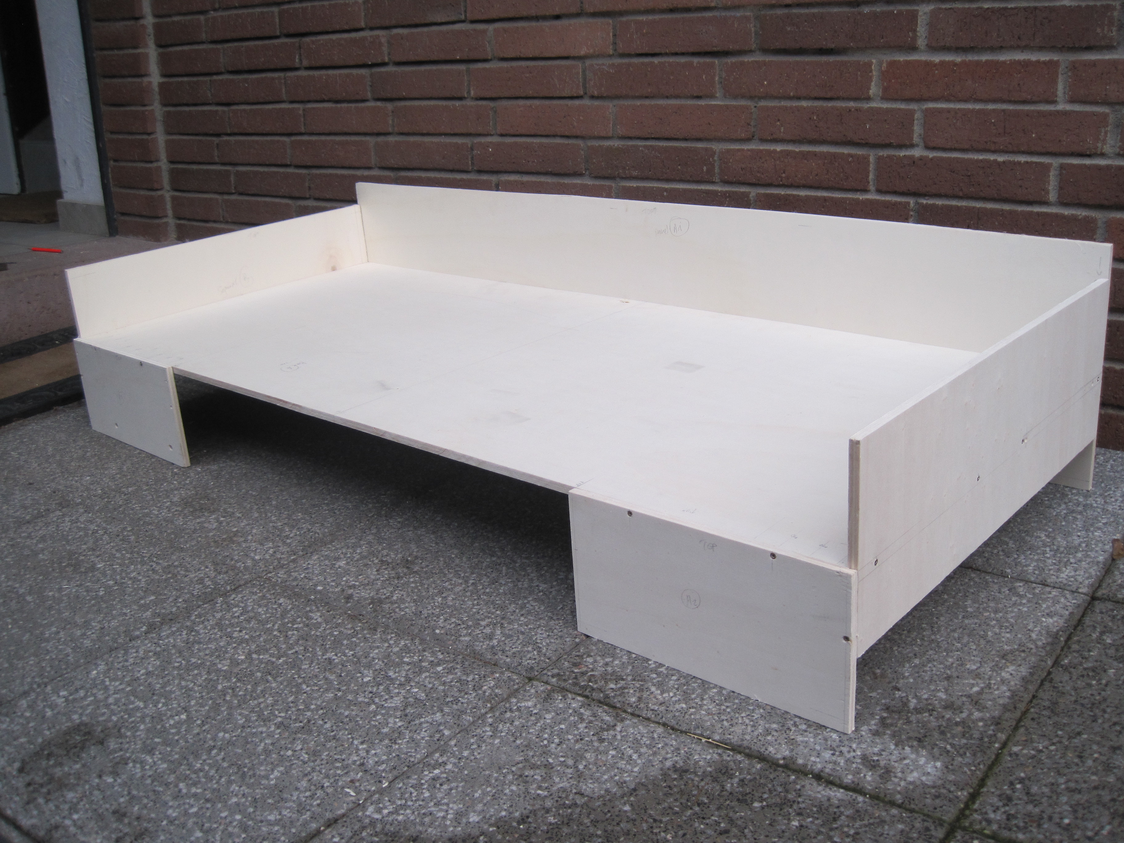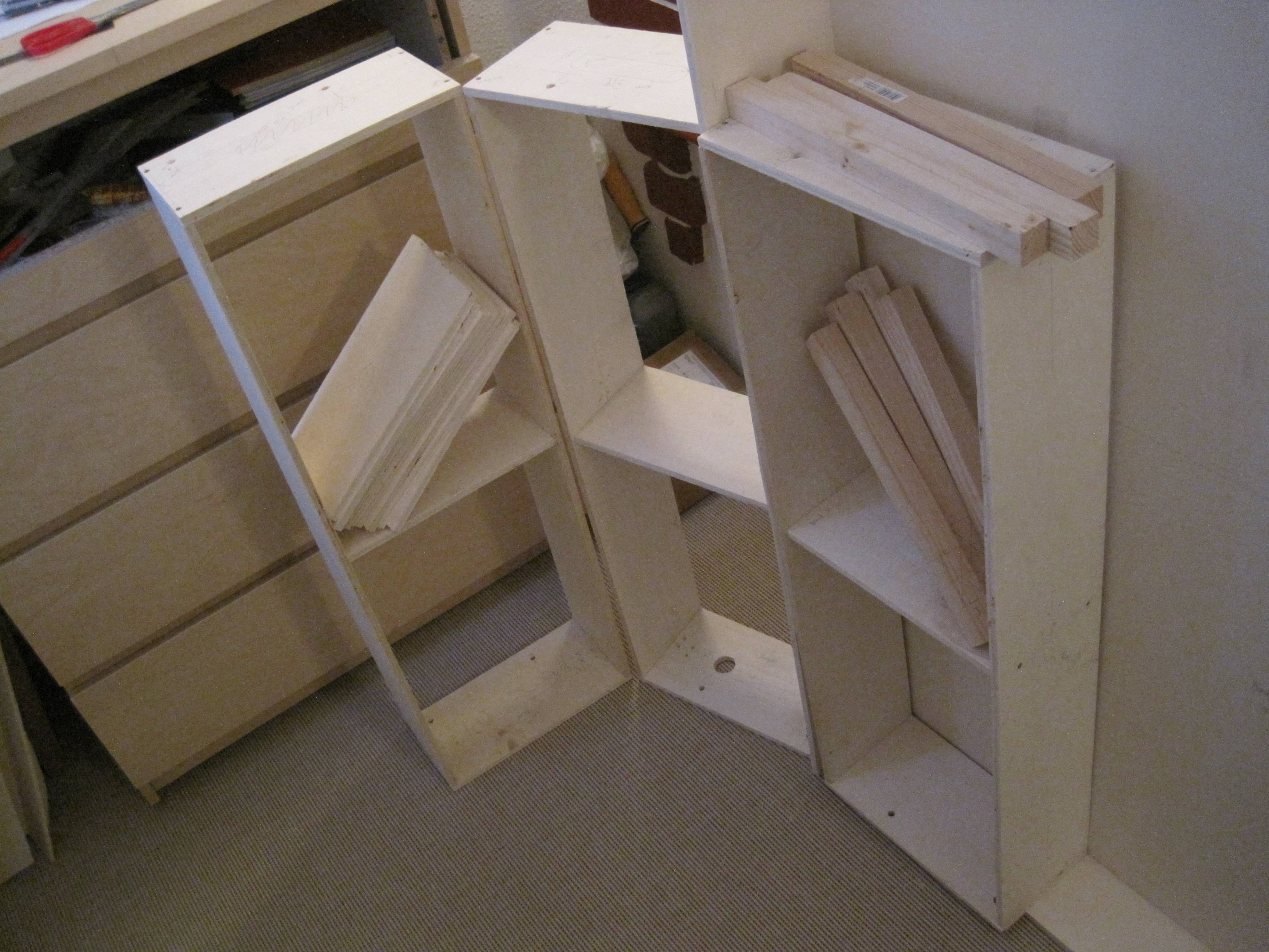 Nope, this is not a table but the (lower) base of my Segment A (remember the one on top of chest of drawers). It too received the side and back panels.