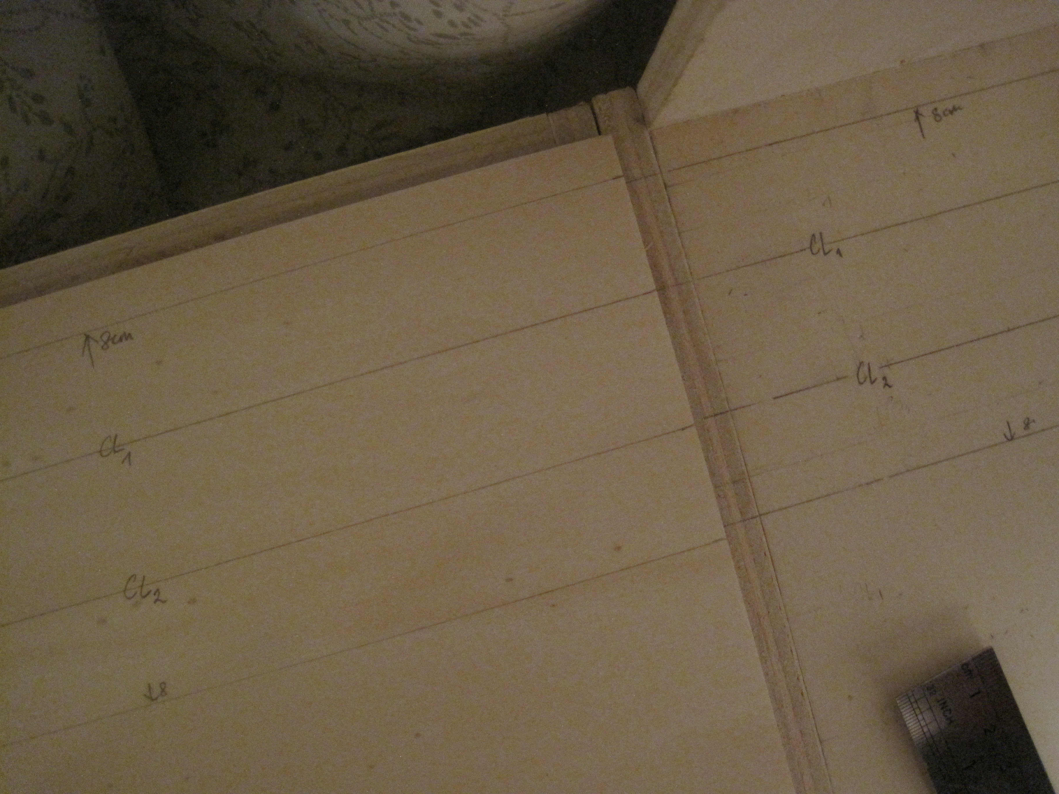 I started by marking the track centres (CL) and track boundaries (or what is known as permanent right of way). The tracks spacing would be 30mm, slightly wider than the NEM recommended 25mm (on open tracks)/28mm (at stations) (Peco turnouts/crossings have track spacing 26.5mm), to allow for overhangs at smaller radius. The width of right of way would be 80mm, allowing space for overhead catenary masts. Even though at hidden tracks, there would be no overhead catenary masts, I am considering adding overhead wires using rails or thick wires so that electric trains could have their pantographs at “operating” positions all the time (more about in future posts). It might be a bit too extreme do have such luxurious permanent right of way in hidden tracks but I wanted to be consistent and made sure I did not forget about extra spaces for masts once the tracks enter the visible tracks zone.
