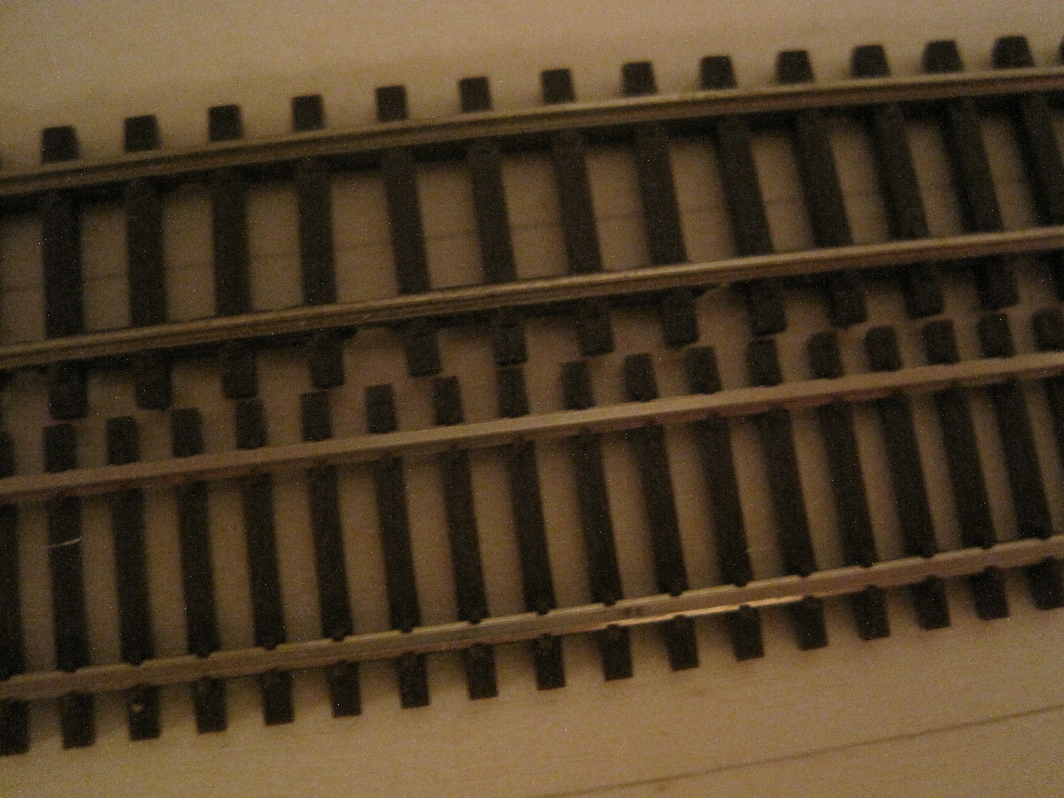 I am now working on the bottom level aka Ground Minus 1, which is 110cm from the floor. Tracks at this level were marked in red and mainly consisted of hidden tracks. To be exact, the part that I am focussing on is the tracks in Segment H leading up to the diamond crossings at Segment A. The picture below shows the tracks at bottom level.