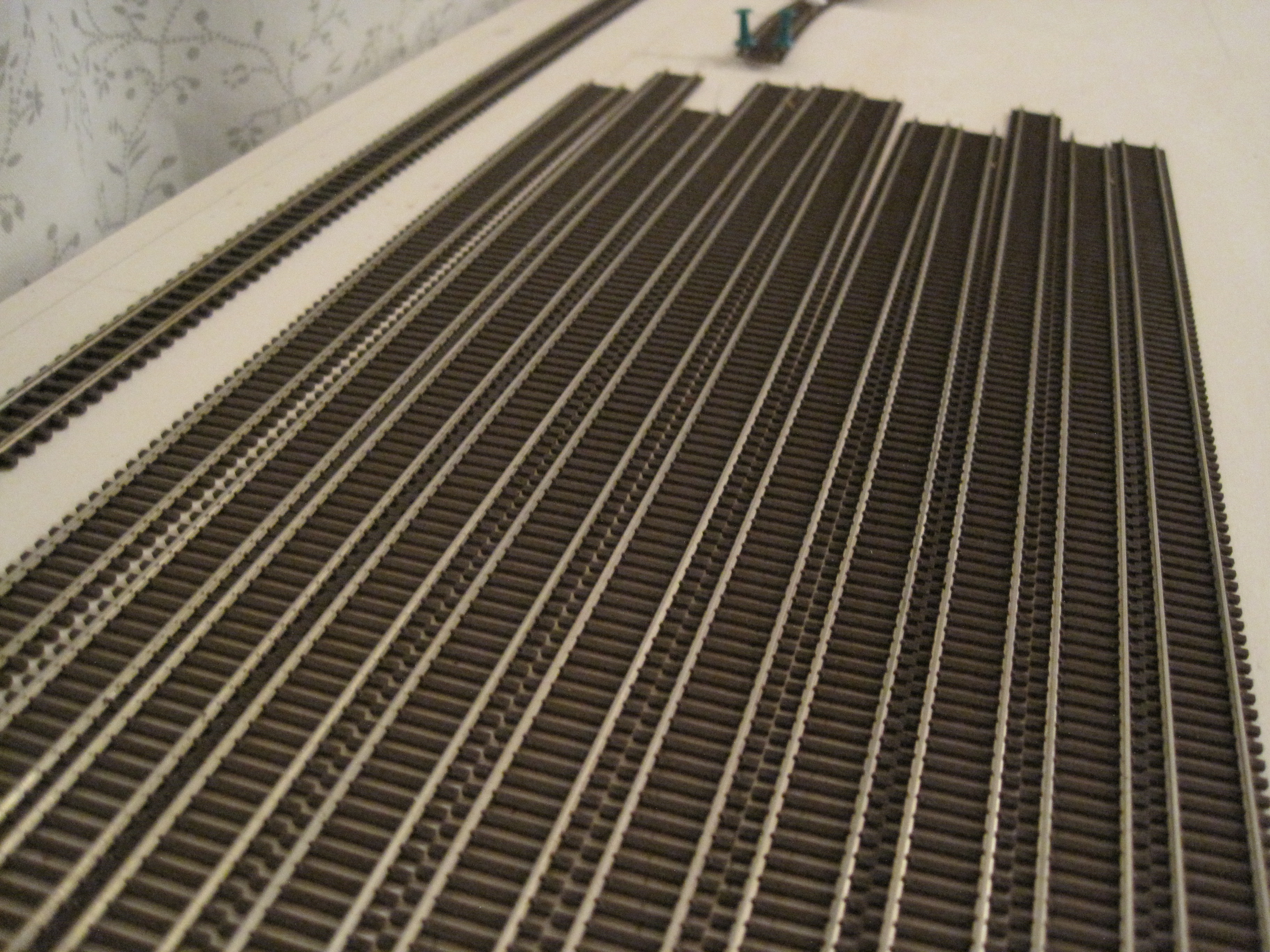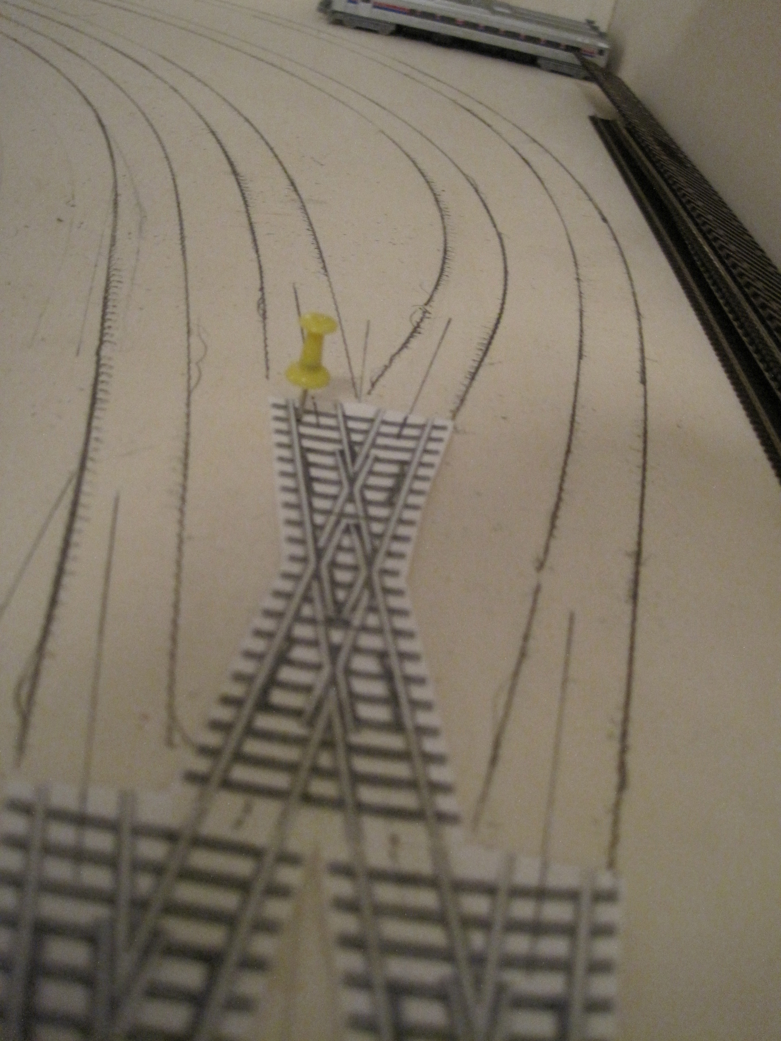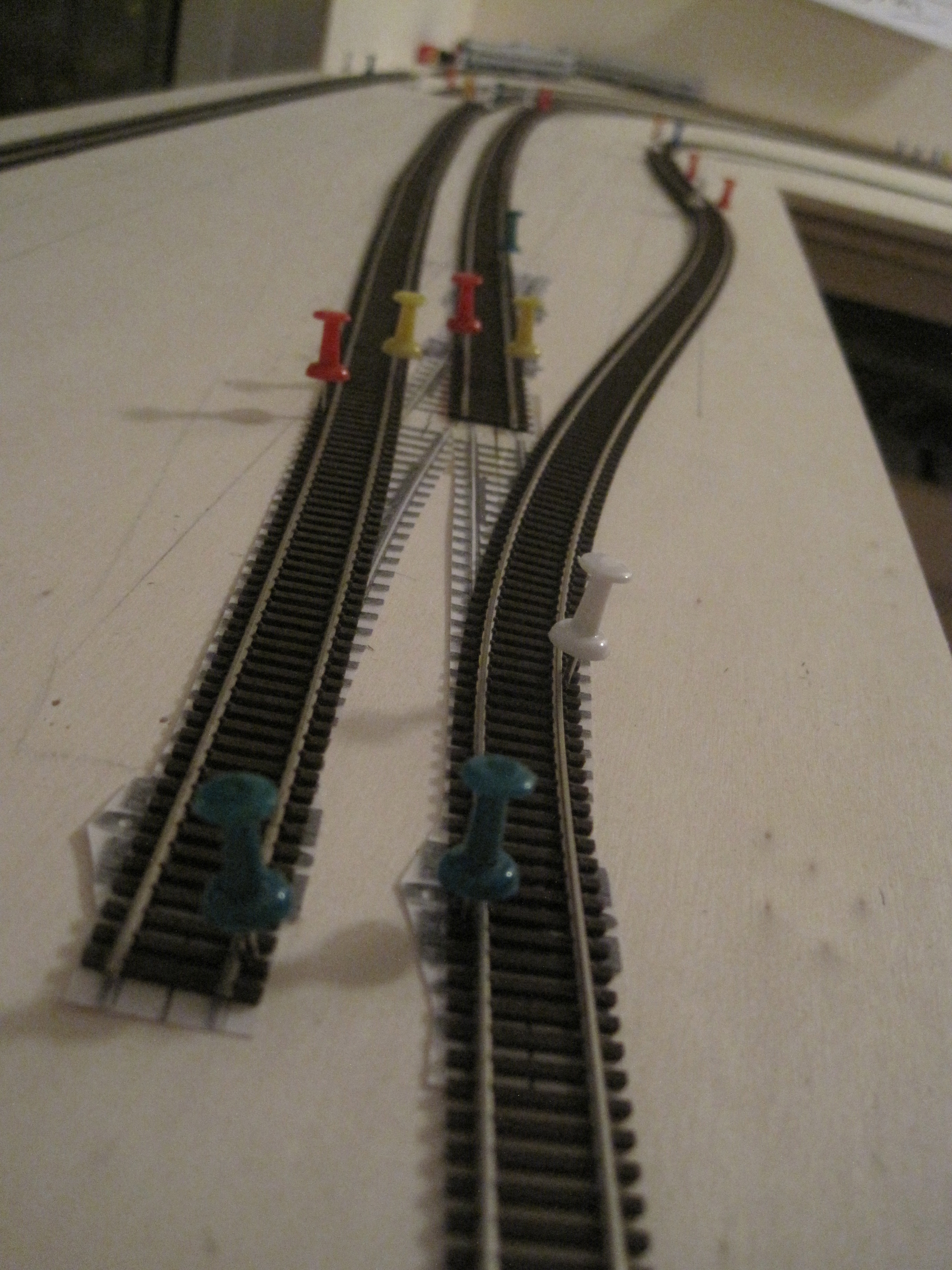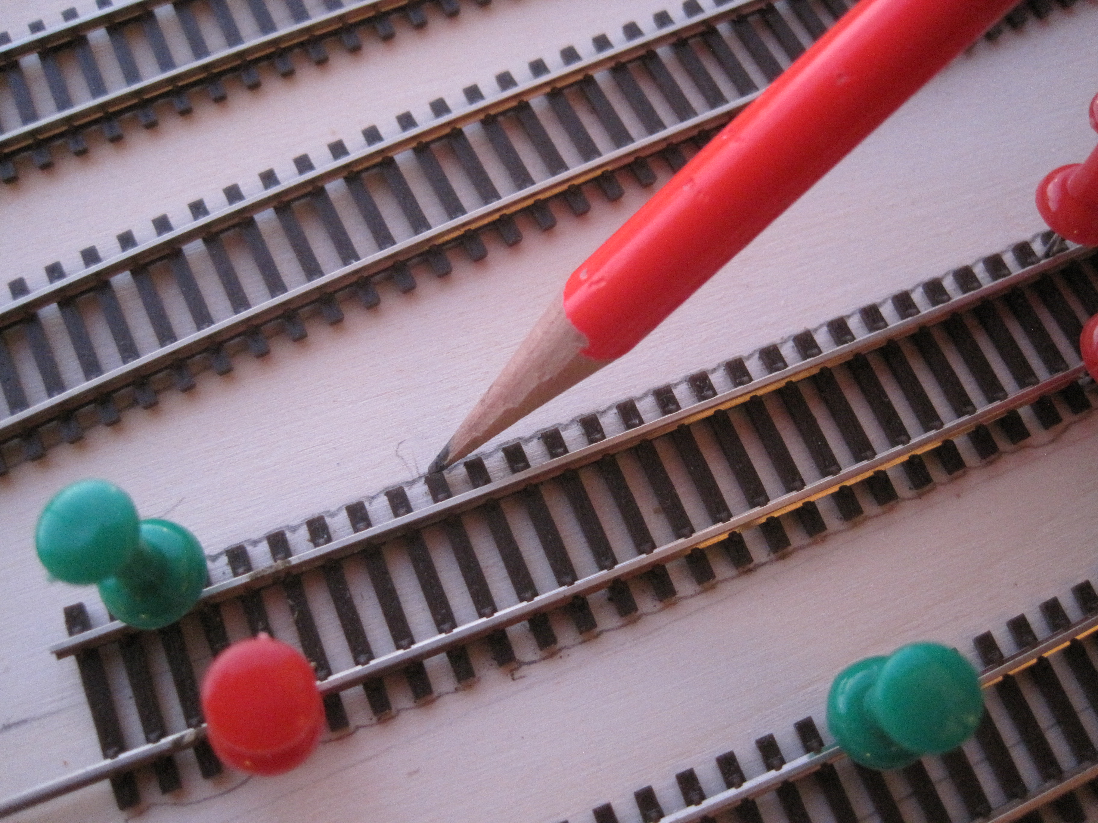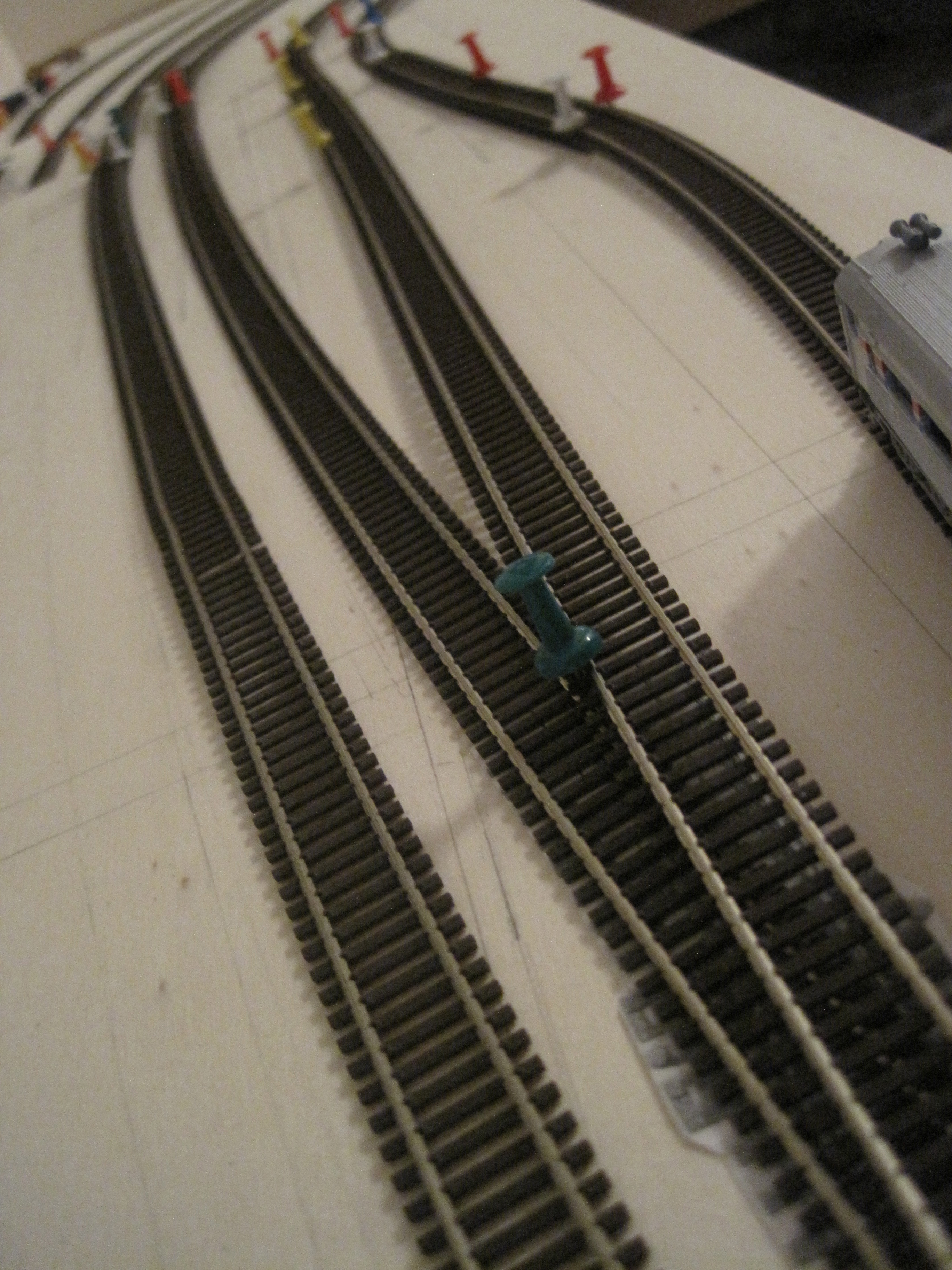 A simple technique that would save you a lot of headaches in laying tracks especially when you have lots of tracks that criss-cross each other and where you want to make sure you have adequate spacing between tracks for obstructions and trackside structures.