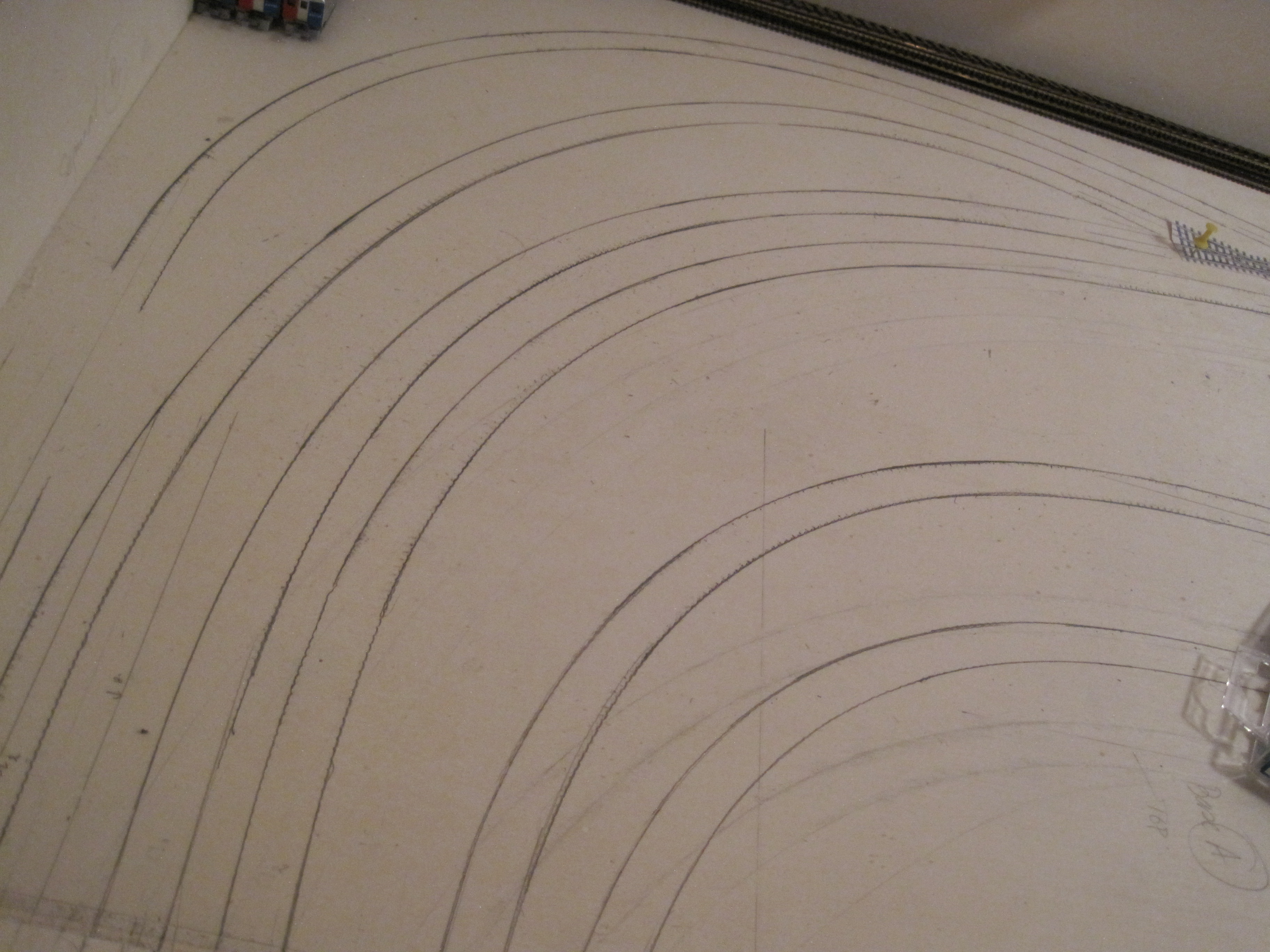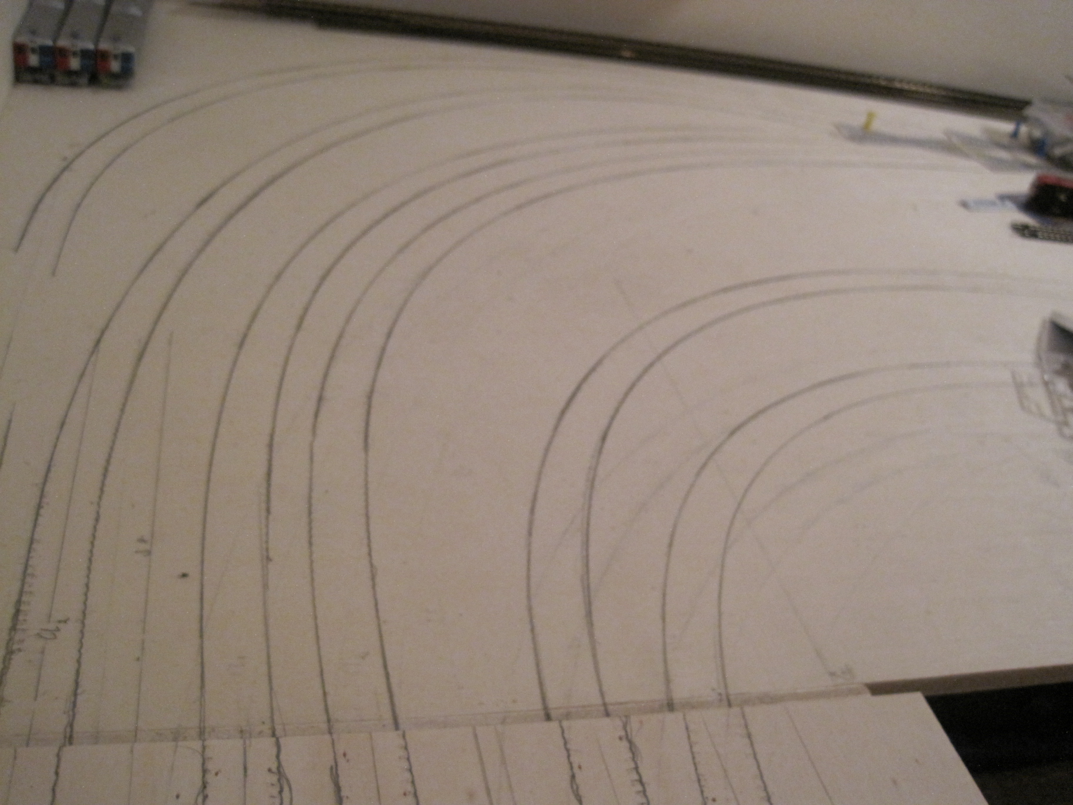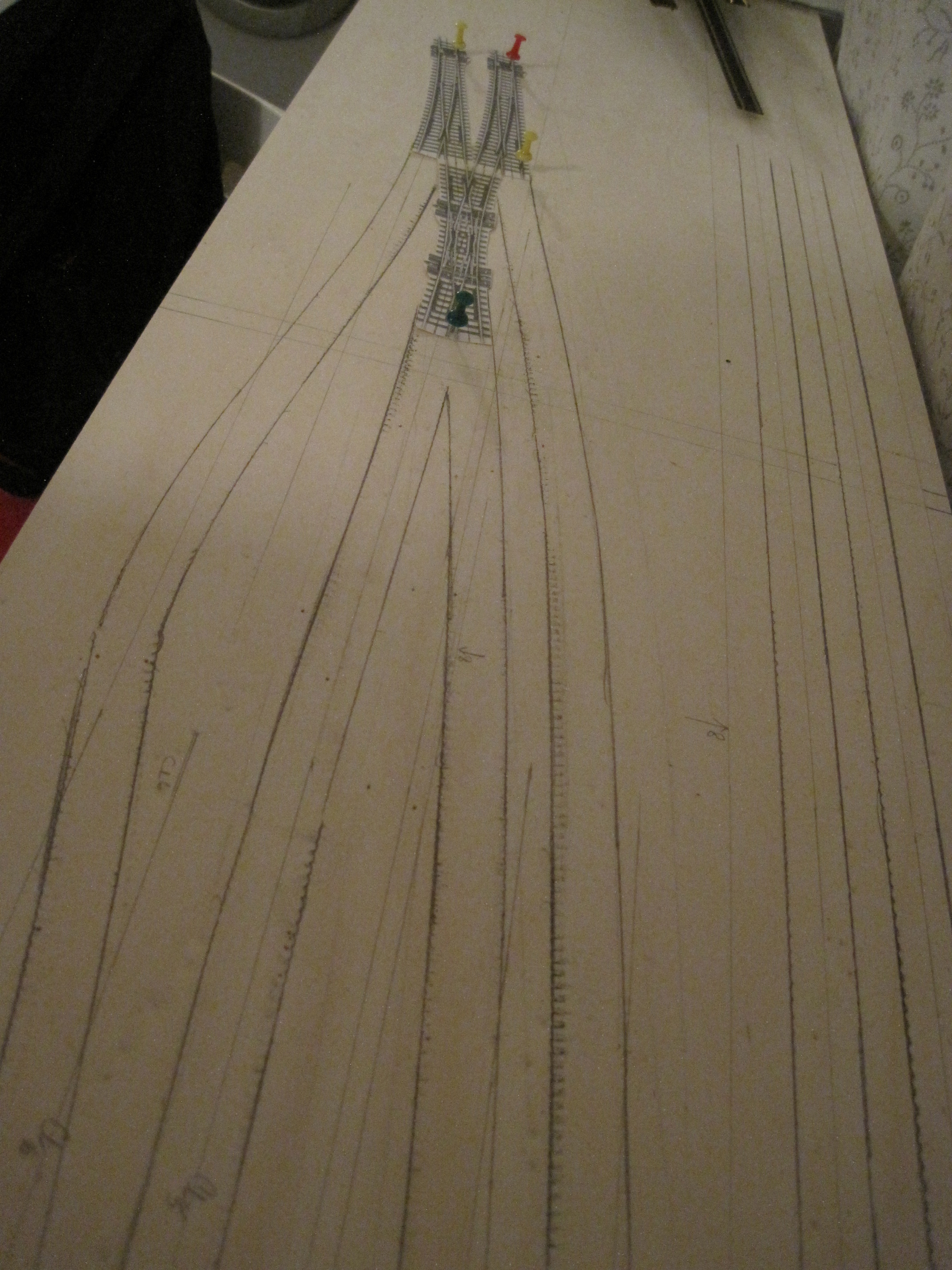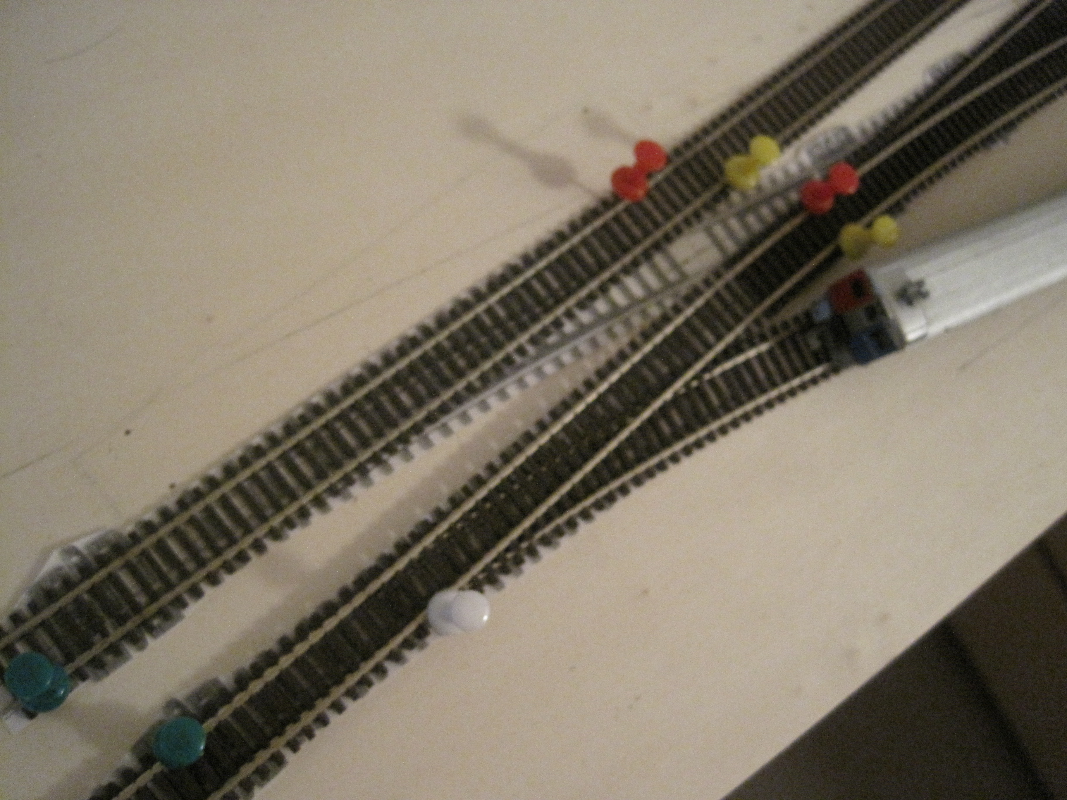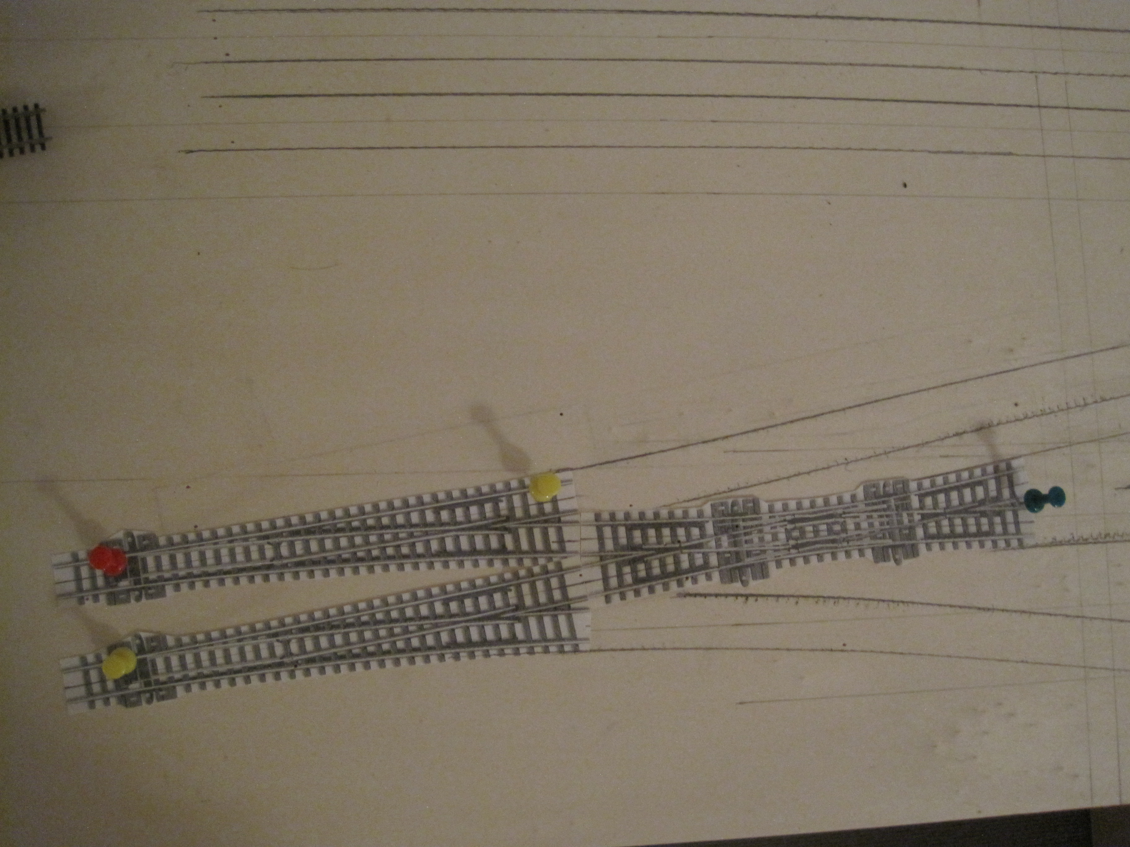 A simple technique that would save you a lot of headaches in laying tracks especially when you have lots of tracks that criss-cross each other and where you want to make sure you have adequate spacing between tracks for obstructions and trackside structures.