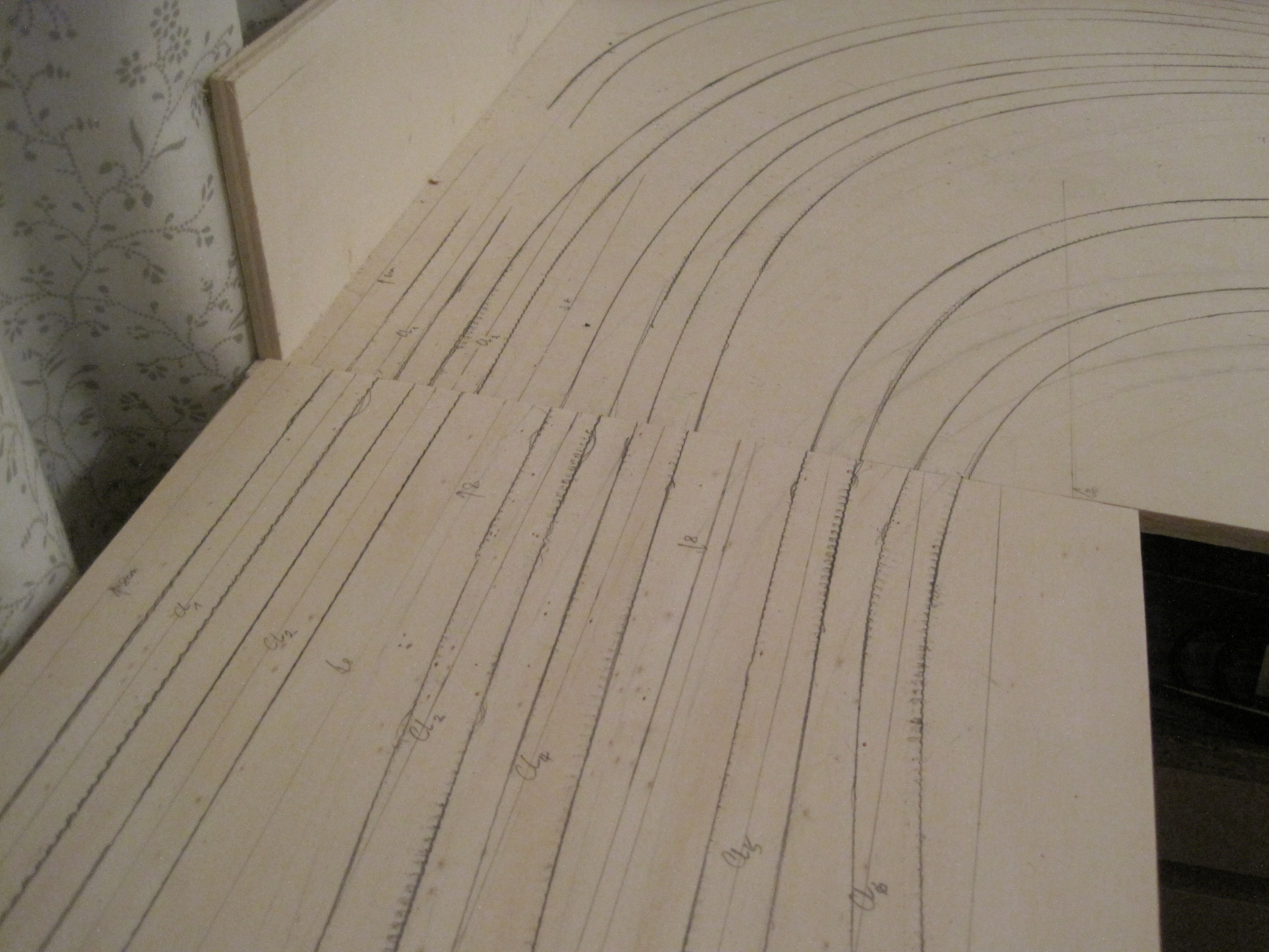 Once you are happy with the track configurations – the look and feel, then mark the outlines of the flex tracks with a pencil so that you leave clear marks for cork roadbed and margins for cutting with a jigsaw.