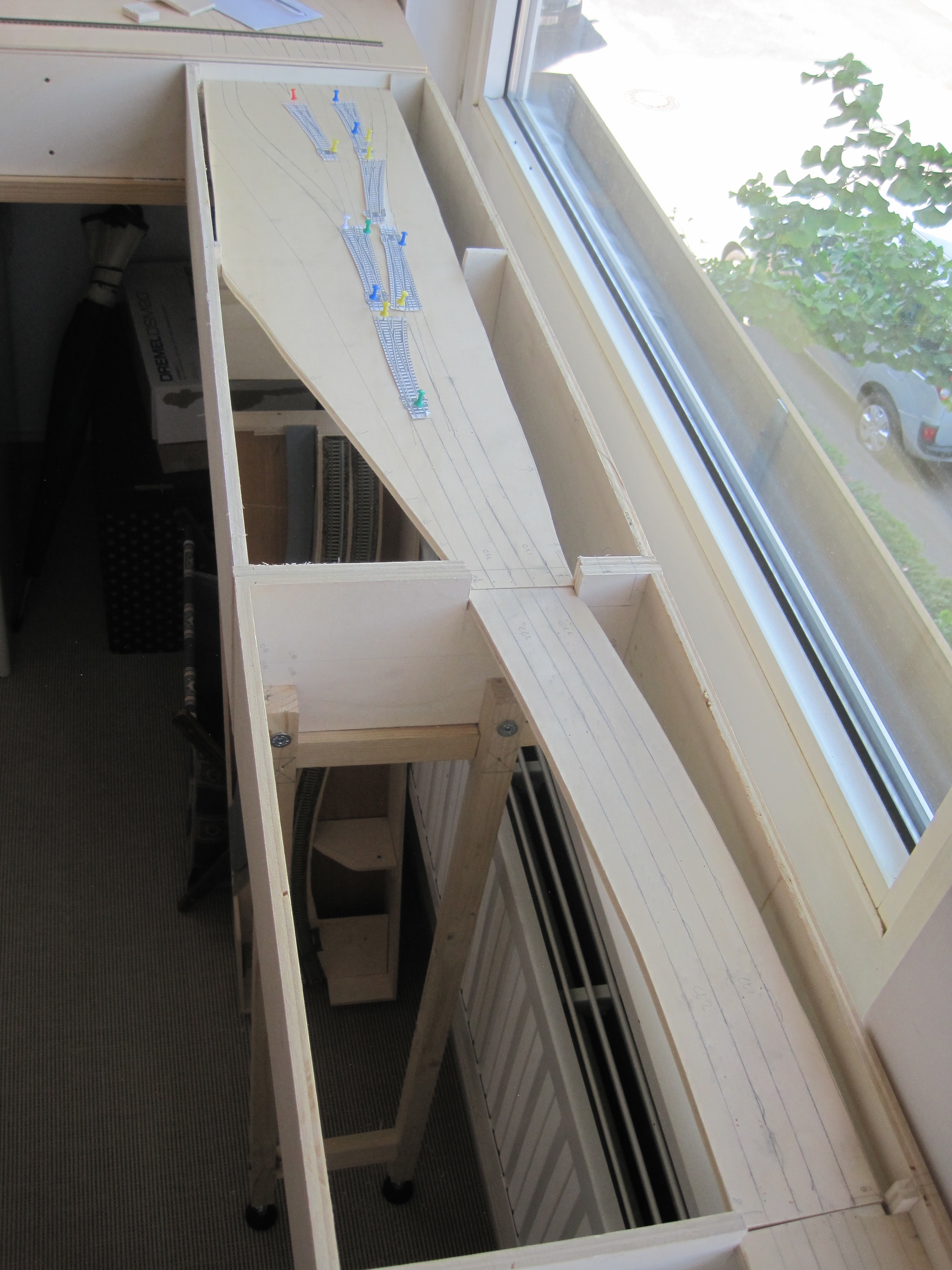 It has been exactly two months since I did any serious work on my layout. Checking back on the Build #10, I stopped at one-half of the staging yard track arrangements. I am happy to reduce from 7 originally-planned tracks to 6.