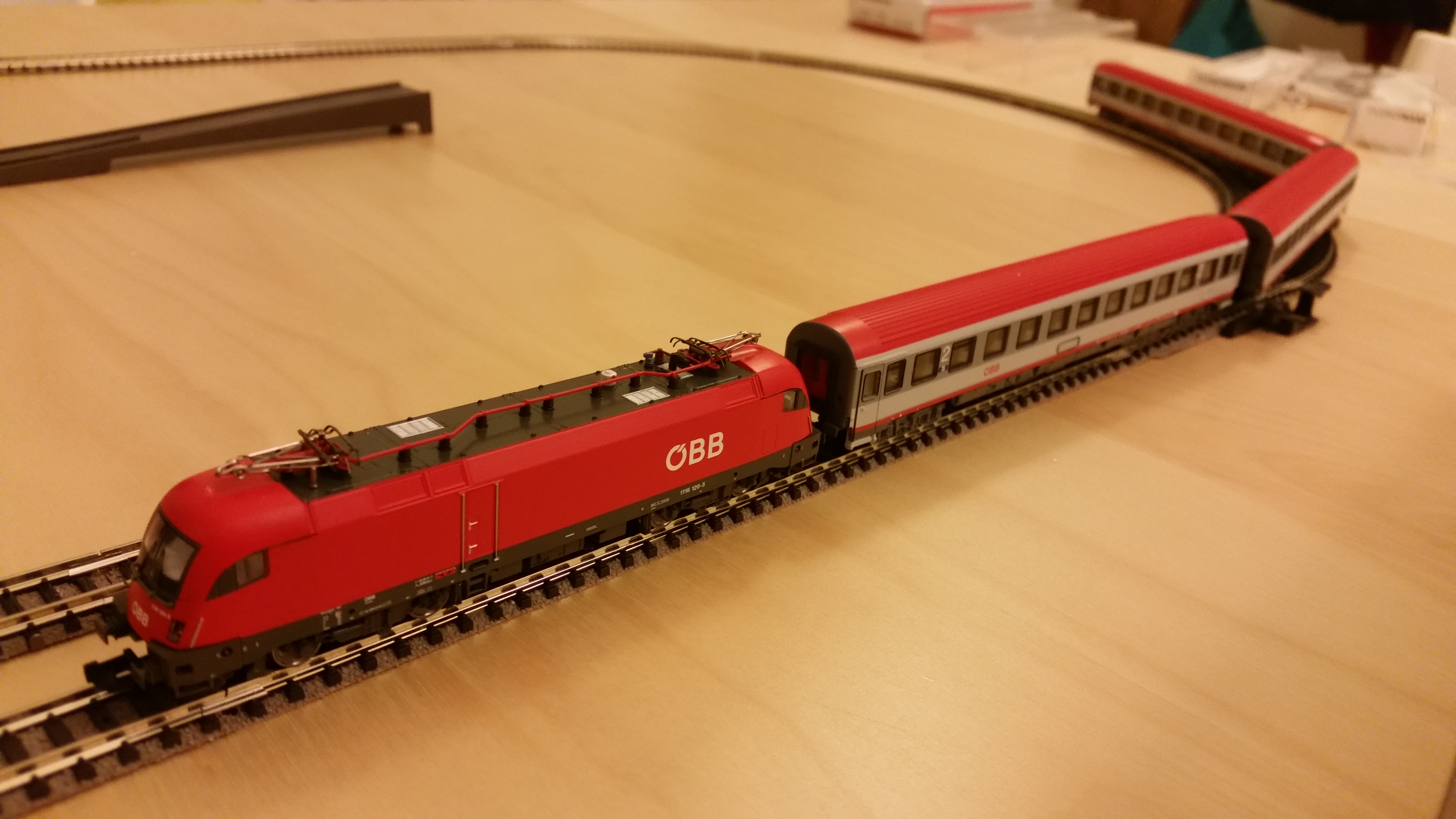 This is my 100th post on germaN160 thus far and so I would like to end the year by showing off my surprised birthday gift – a Fleischmann z21 Digital Startset with ÖBB (Austrian Federal Railway) Rh1116 Taurus and passenger coaches (Art. no. 931383)