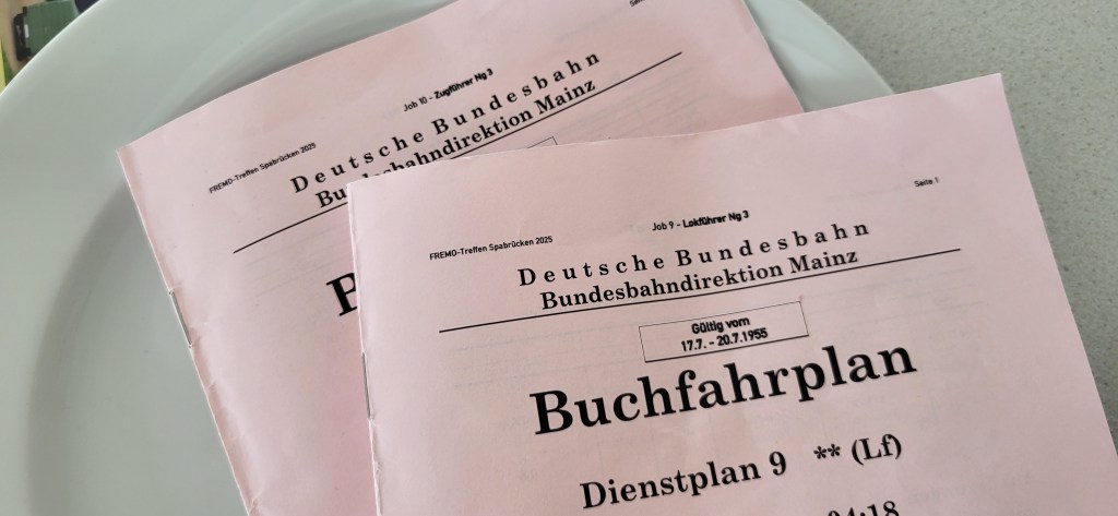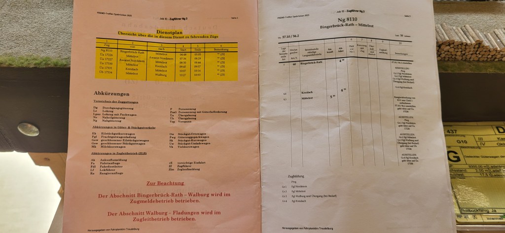 After doing a walk-around of the layout, I approached Erik Streda to ask if I could participate in the next session. He handed me my duty plan and paired me with Manja Balser. as my train conductor (Zugführer). Both of us had a relatively simple train timetable, but the responsibilities were clearly divided. This was my first time experiencing a two-person crew.