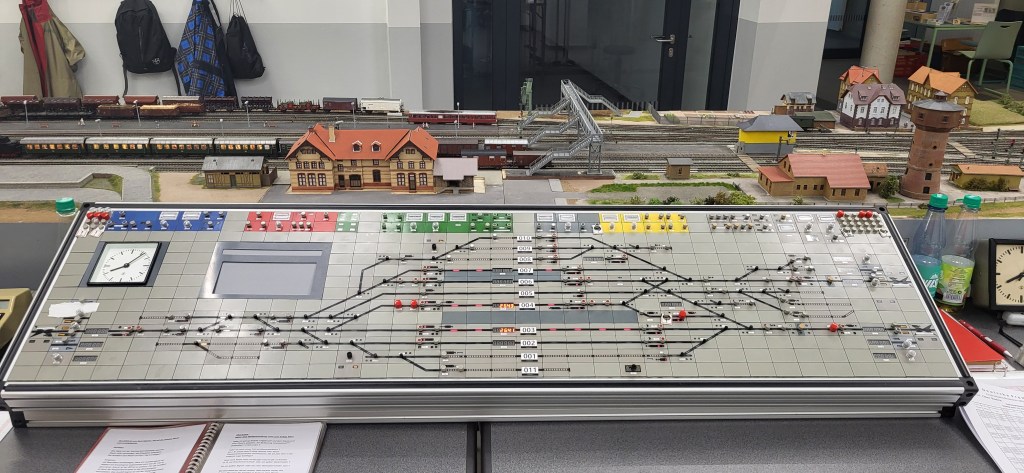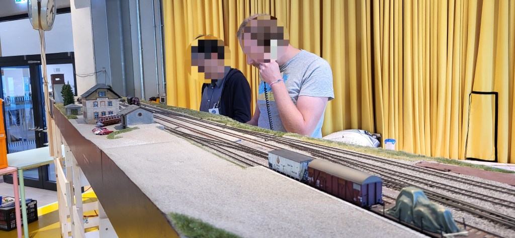 Jeder Tag, beginnend am Donnerstag, war in zwei Hauptsessions gegliedert. Die erste begann nach dem Frühstück in der Mensa um 9:30 Uhr und dauerte bis zur Mittagspause um 13:00 Uhr. Danach wurde um 14:00 Uhr weitergefahren, die zweite Session lief bis zum Abendessen zwischen 17:00 und 18:00 Uhr – und danach ging es oft noch bis etwa 23:00 Uhr weiter. Es war ein voller Tag mit Fahrbetrieb, Zugvorbereitungen für den nächsten Tag und gelegentlichen Reparaturen an „störrischen“ Modulen oder elektrischen Verbindungen.