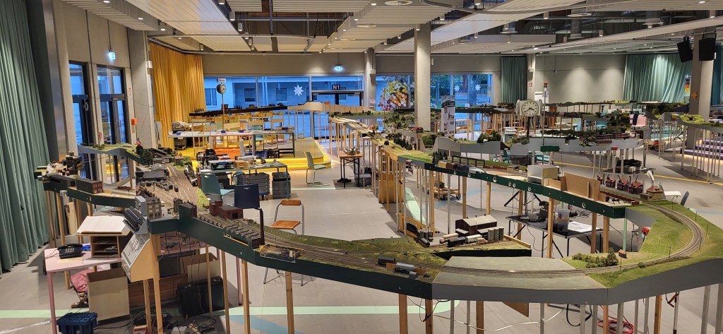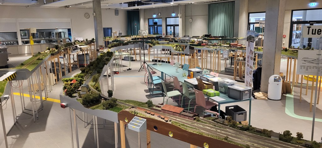 Lo and behold — the FREMO arrangement there was the largest I’ve ever participated in since becoming an official member in May 2025. (Yes, that makes me only six months old in FREMO!) The Rheda FREMO group celebrated their 30th anniversary with this mega layout at the Moritz-Fontaine Gesamtschule (a comprehensive school). It occupied the entire school cafeteria and all the corridors of the main building.