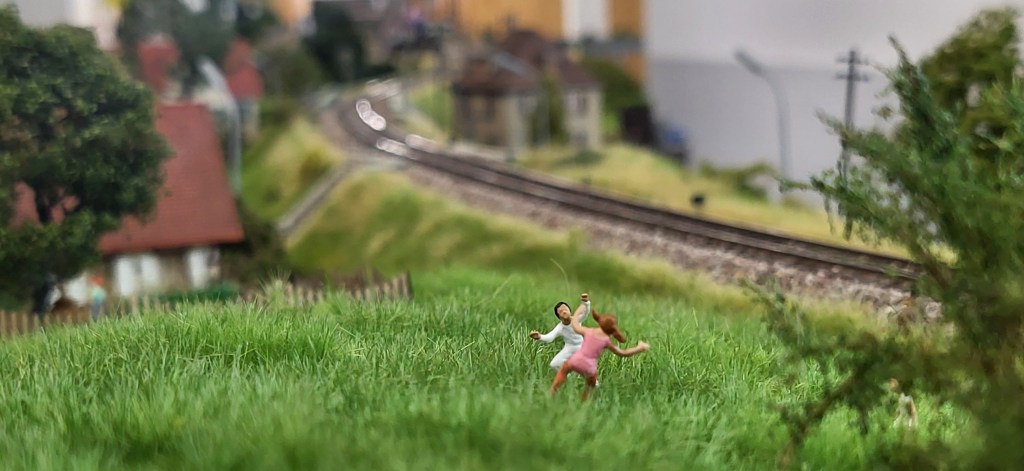 Eine fröhliche Szene von Kindern, die auf einer Wiese spielten, brachte eine willkommene, lebendige Note in unsere sonst eher technisch geprägte, eisenbahnorientierte Umgebung – eine schöne Erinnerung daran, dass Freude und Fantasie genauso zum Hobby gehören wie Präzision und Detailtreue.