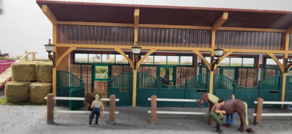 Zwei Module fielen mir besonders ins Auge. Sophies wunderschönes Modul einer Pferdetrainings-Ranch hatte eine Sondergenehmigung vom Organisator erhalten, um trotz des Themas „Sommer in den 1960er Jahren“ Teil der Anlage zu sein. Es war wirklich herzerwärmend zu sehen, dass die Organisatoren jungen Mitgliedern Raum gaben – denjenigen, die unser Hobby in die Zukunft tragen und die Leidenschaft für den Modellbahnbau lebendig halten.