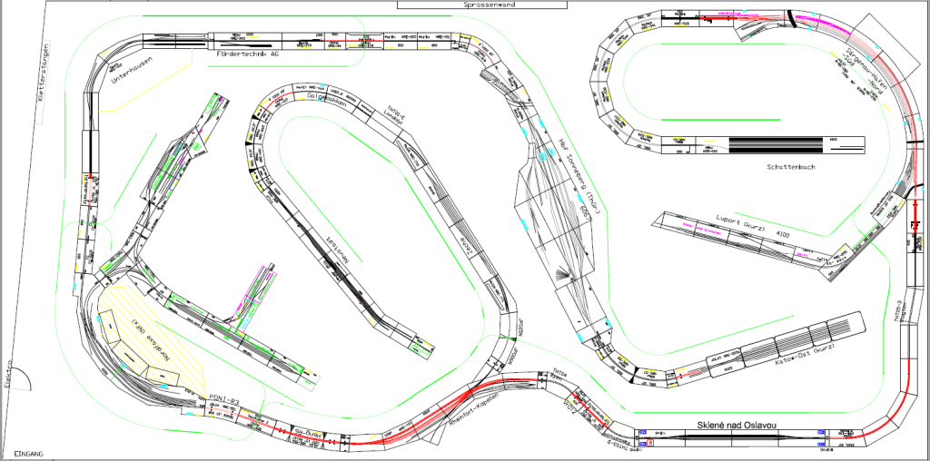 Beim diesjährigen Luckenwalde-Treffen nahmen vier Teilnehmer aus Dänemark und drei aus Tschechien teil – jeweils mit ihren eigenen Modulen. Jan Geertsen brachte seinen Nordfaxe-Bahnhof mit, Peter Elleby sein Tunnelmodul und Daniel Merhaut seinen Bahnhof Sklene nad Oslavou. Michael Köhler präsentierte seinen beeindruckenden Hbf Sonneberg (Thüringen) – ein exaktes 1:160-Modell des Bahnhofs um 1986, das den Blick aus dem Küchenfenster seiner Großmutter detailgetreu nachbildet. Jan Schirling zeigte wie immer seine eindrucksvolle und äußerst detaillierte Eisenhütte.