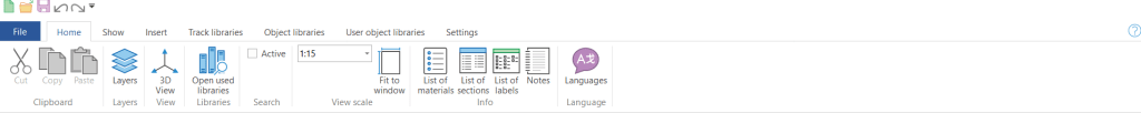 Many of us are familiar with the MS Office suite of applications. If you use MS PowerPoint, you will notice some similarities. AnyRail’s menus are arranged in an MS Office–style layout, making it easy to find what you need since the tools are grouped logically.
