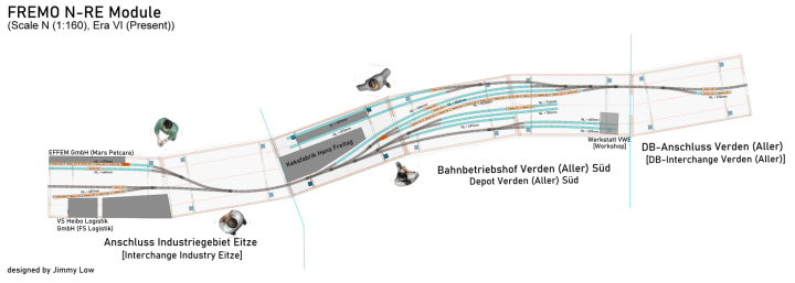 In this second post, I delve into my concept and planning for my first FREMO N-scale module. If you have not read the history of the Verden–Walsroder Eisenbahn (VWE) and why I chose to model this private branch line, you can find it here. Three things attracted me to building my first FREMO N-scale module: firstly, a compact industrial switching layout based on a real-life railway; secondly, the flexibility of a modular layout given my space constraints—not only at home, but also when transporting it in my car; and thirdly, being part of the FREMO N-RE community, where trains are operated using timetables and German railway and VWE prototype practices.