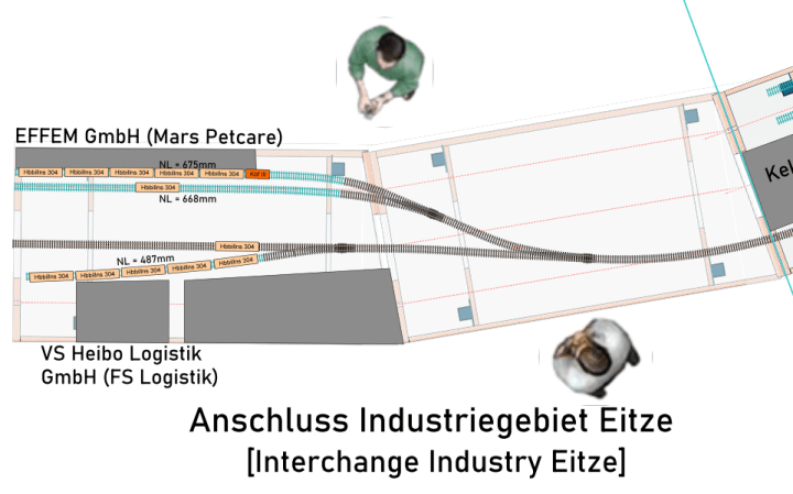 Diese drei Kunden sind der Kern der Tierfutter-Logistikkette und der Hauptgrund für Rangier- und Übergabeverkehr. Deshalb will ich sie unbedingt in das Modulkonzept einbeziehen – aktuell beschränkt auf den nördlichen Bereich von Eitze.
