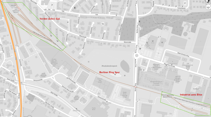 Given the importance of these three customers to the pet food supply chain—and their role as the main drivers of switching and transfer traffic between the VWE and DB at Verden—I want to incorporate them into my FREMO module concept. For practical reasons, I am currently limiting the scope to the northern end of the Eitze industrial zone.