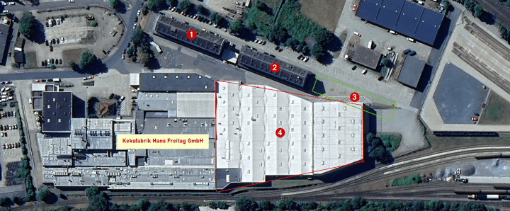 - In 1955, the area south of the station was largely undeveloped. The confectionery factory Hans Freitag moved to this site only in 1969, initially occupying roughly one third of its present footprint.
